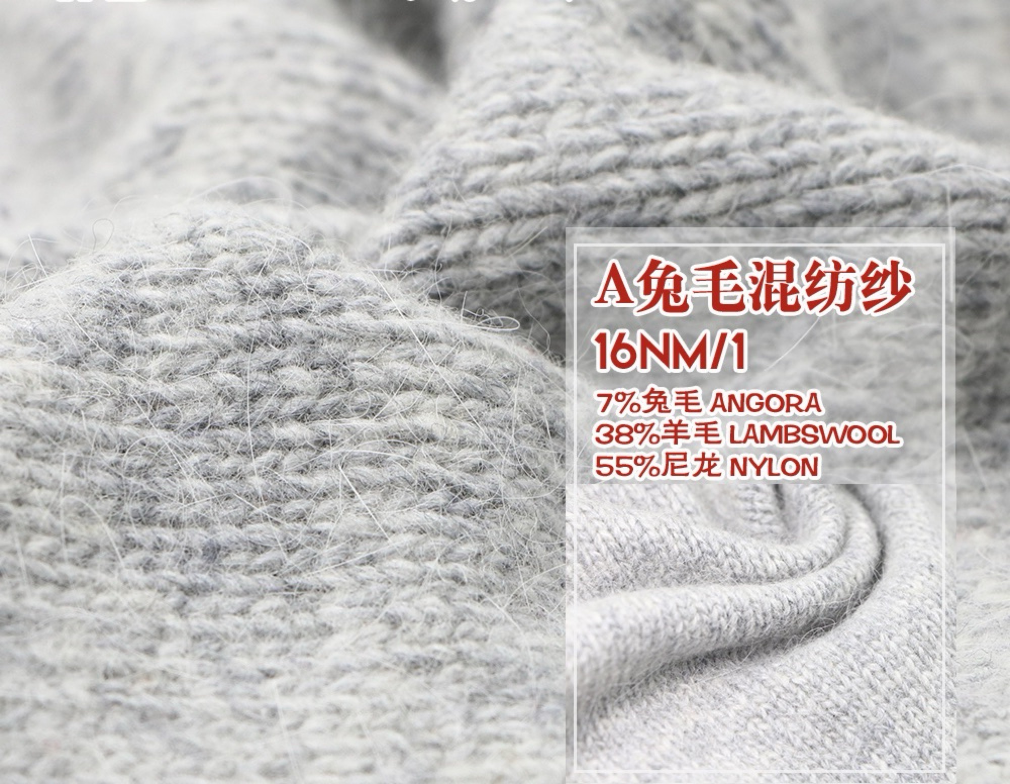 7%兔毛 38%羊毛 55%锦纶