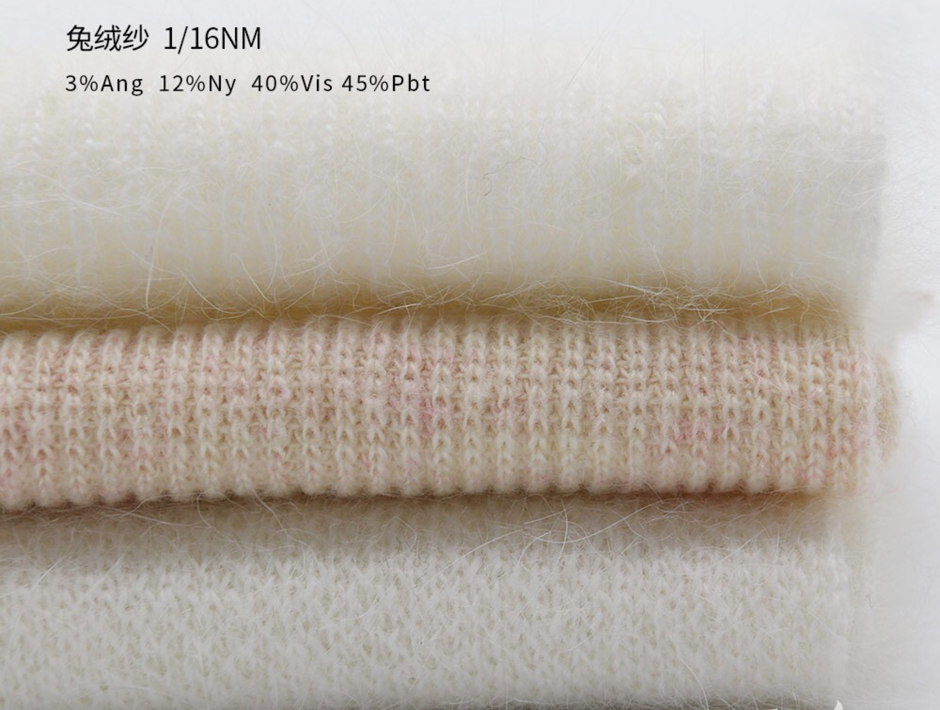 3%兔绒 12%尼龙 40%黏胶 45%pbt