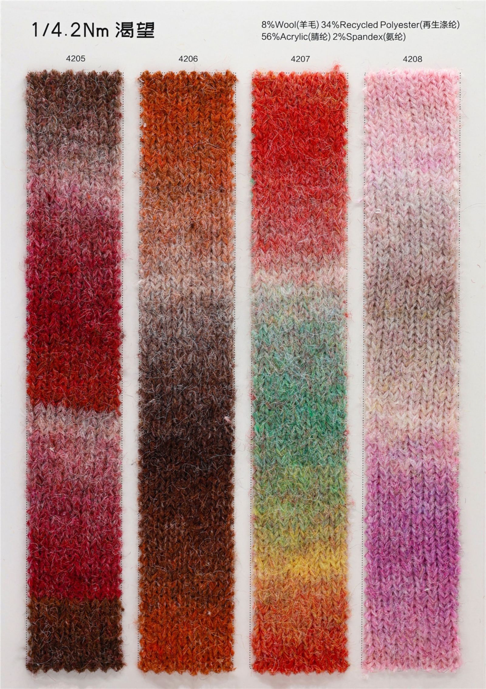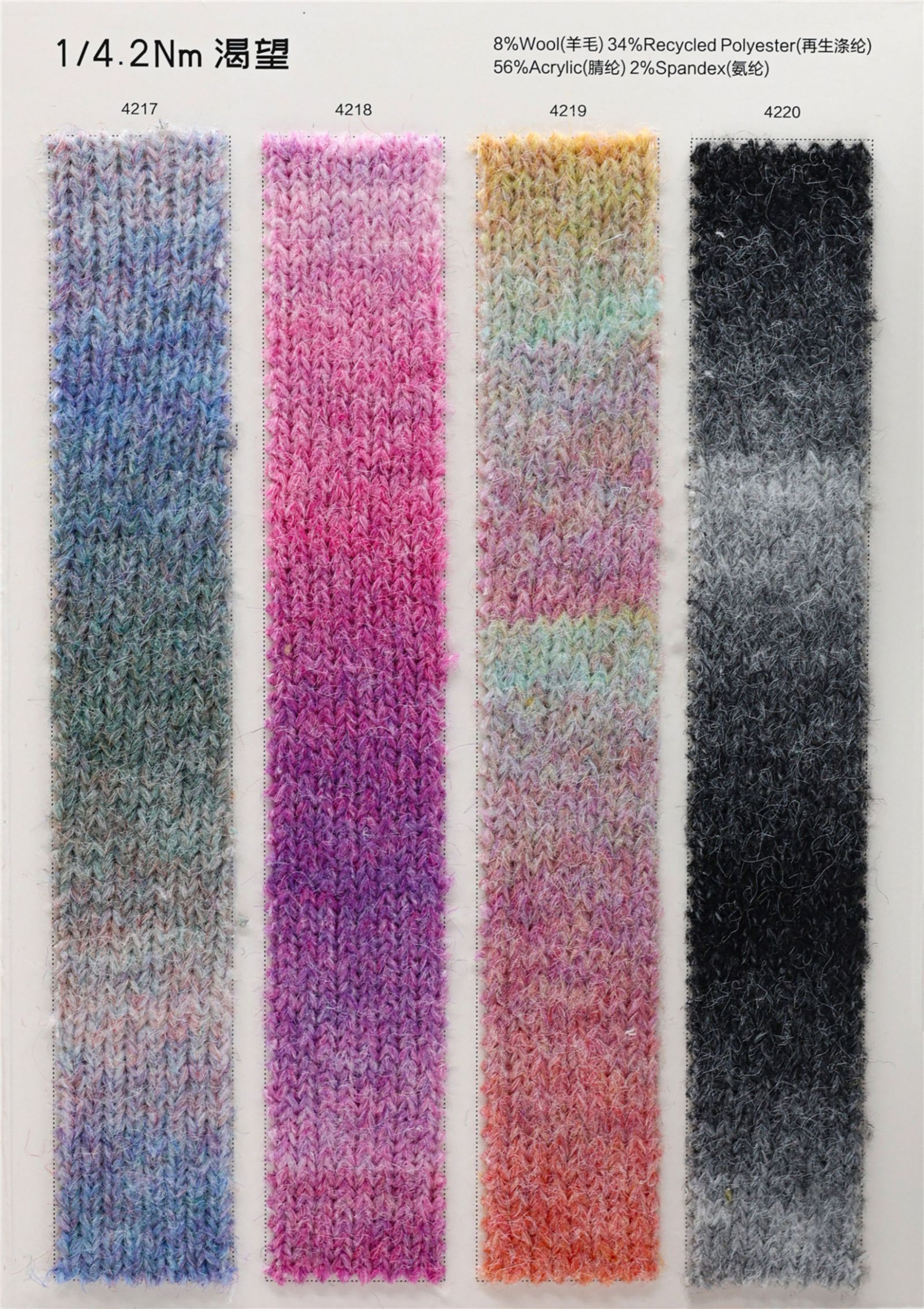 8%羊毛 34%再生涤纶 56%腈纶 2%氨纶