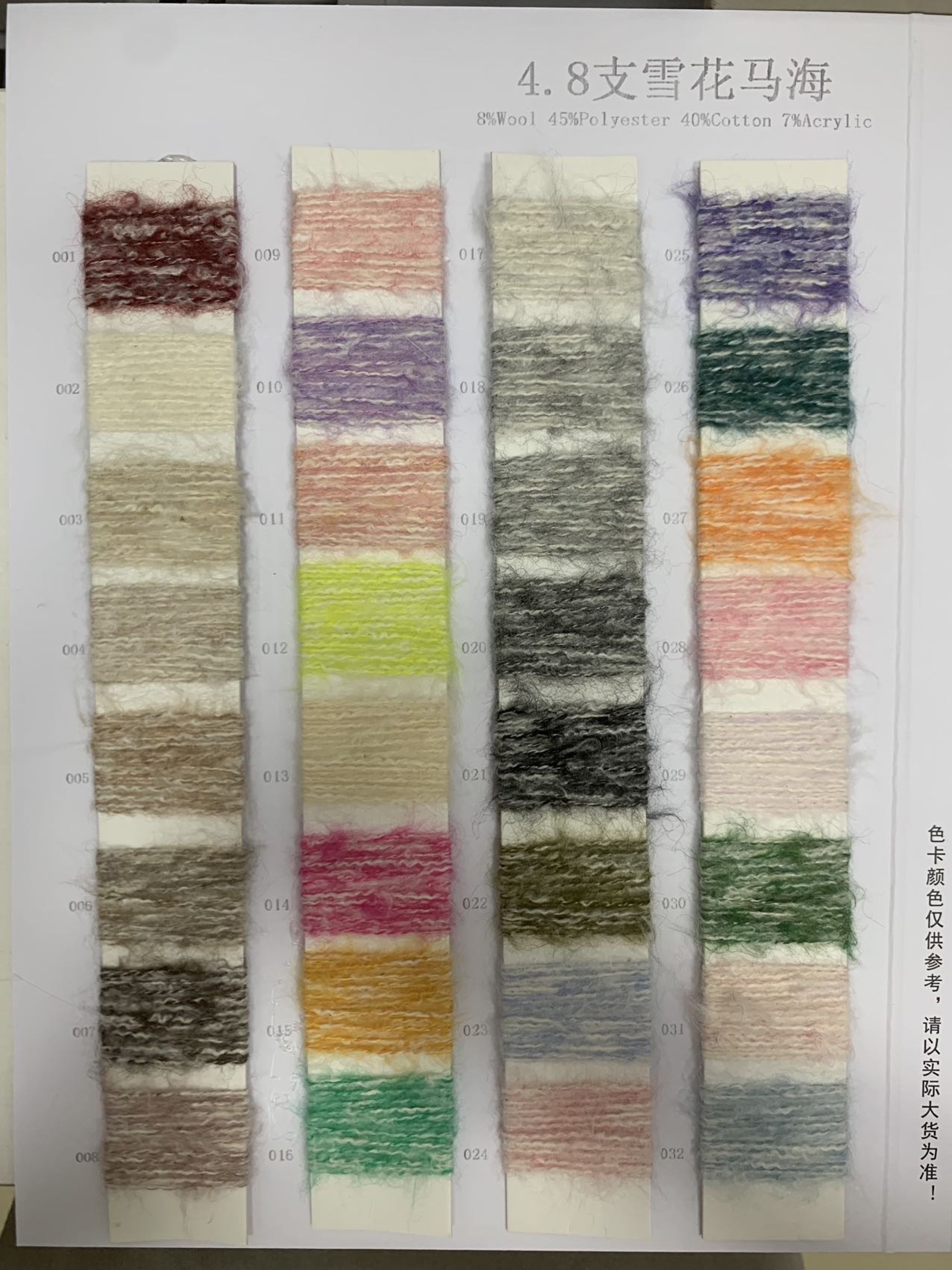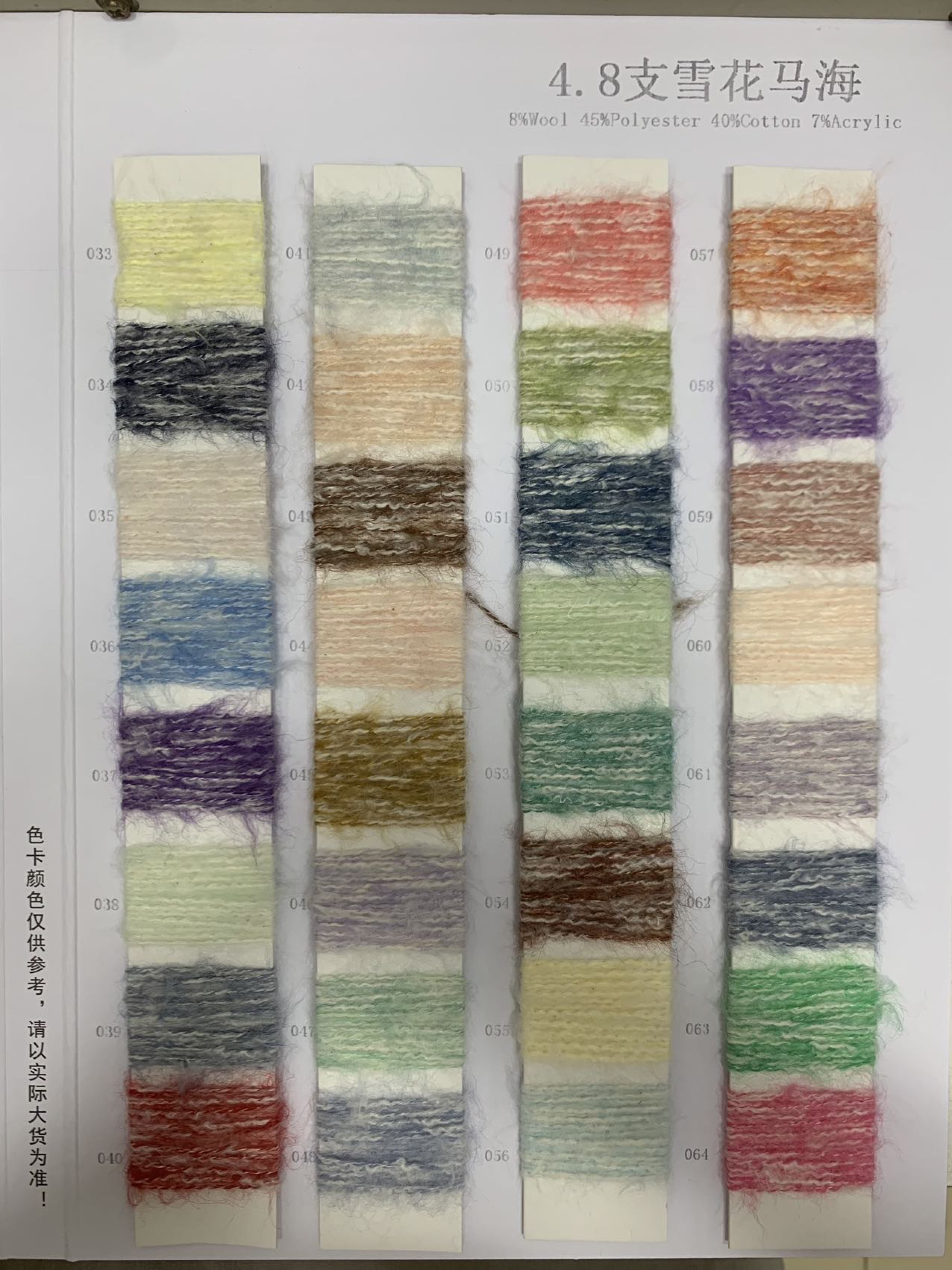 8%羊毛 45%涤纶 40%棉 7%晴纶